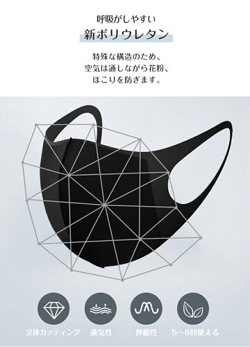 【 ウレタンマスク(3枚入) 】 水洗い可能で繰り返し使えるポリウレタン製マスク。